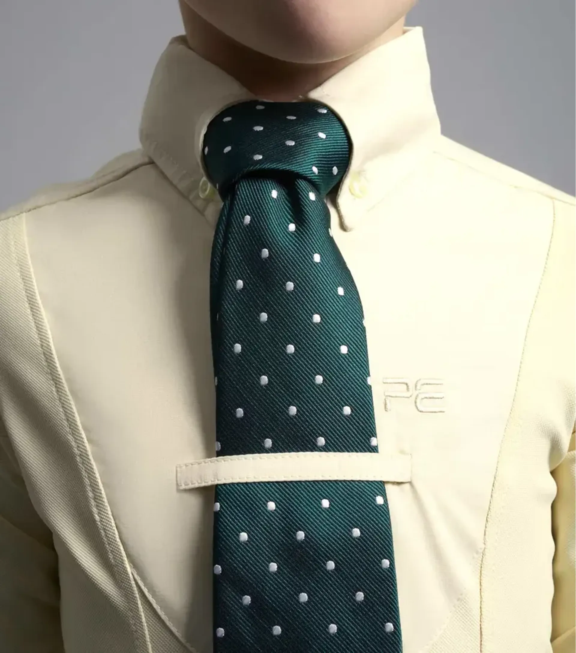 Edged buttons with a subtle etched branding add a polished, luxury look to this riding shirt. Designed to be worn with a tie and featuring a tie tuck to hold the tie perfectly in place. Holding buttons on the collar corners create a traditional equestrian look, perfect for showing and other riding activities.