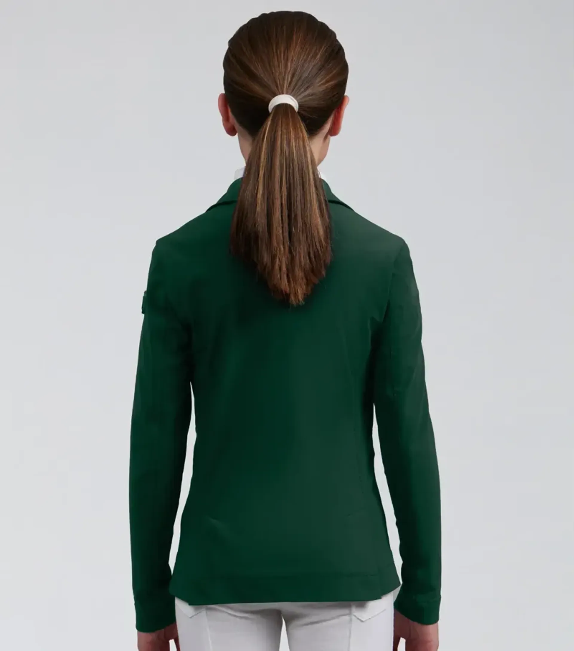 This girls competition jacket is ideal for a wide variety of equestrian disciplines. This jacket is crafted from a lightweight sleek material that feels luxuriously soft to the touch and comfortable against your skin. The construction provides multidirectional stretch for enhanced freedom of movement whilst offering improved breathability, perfect for the intensity of competition.