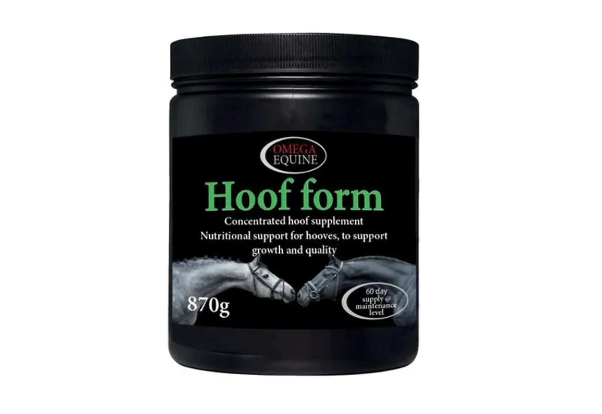 Hoof form contains 35mg of biotin per serving, the optimal amount to promote healthy and strong hoof growth.