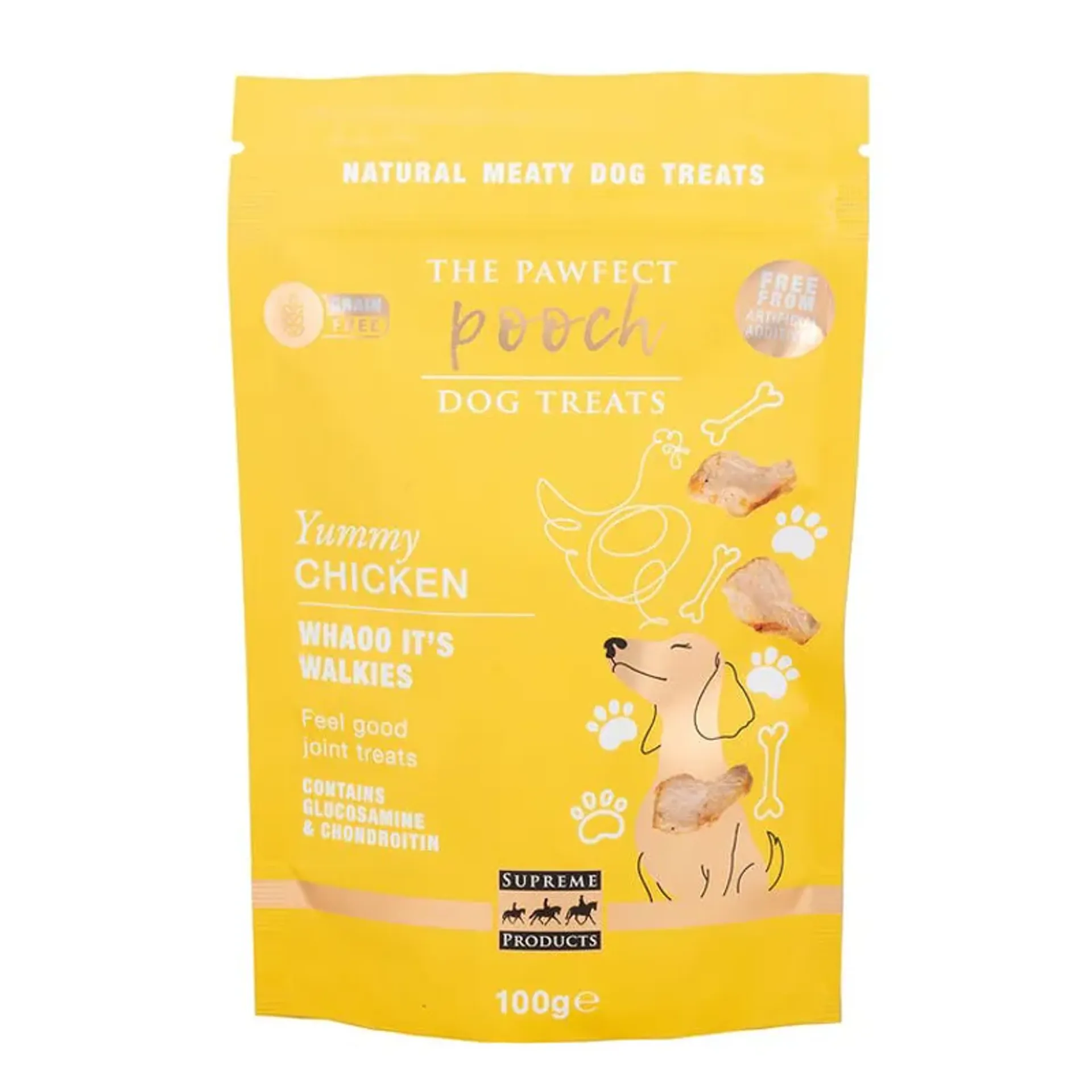 These yummy chicken paw-shaped dog treats are packed with chicken, salmon oil, glucosamine, and chondroitin to help maintain your dog’s joint health, leaving them feeling fabulous and ready for walkies!