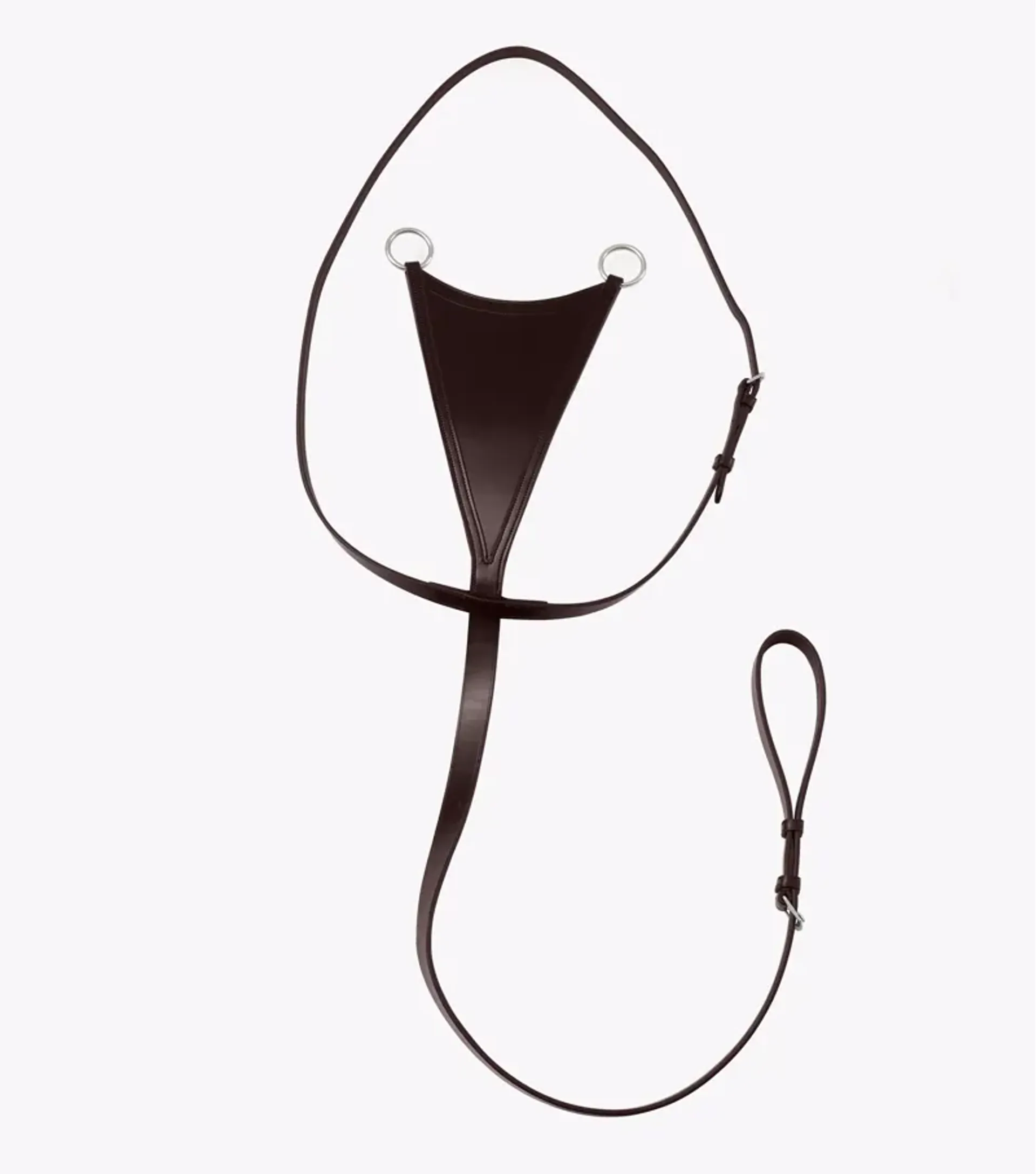 It can be easily fitted to the horse and adjusted around the shoulder and girth in order to achieve an ideal fit. The neck straps on this martingale are joined with leather forming what is known as a ‘bib’, this helps keep the riders reins together and also stops the horse reaching back and grabbing the neck straps.